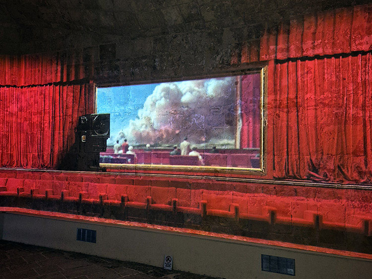 L’autre thématique sociétale résolument contemporaine que porte aussi cette œuvre immersive du Pavillon Français, c’est celle de l’intelligence artificielle générative qui a été centrale dans la production de telles images. L’outil, ou plutôt le medium mis en œuvre, confère une inquiétante étrangeté aux flammes comme aux fumées. Quant à l’esthétique générale de cette création présentée en exclusivité à Malte, elle emprunte tant à la peinture réaliste américaine qu’aux plans panoramiques en cinémascope ou aux mises en scène de la photographie contemporaine. C’est donc en croisant les imaginaires, incluant celui de la machine, que l’artiste nous alerte sur ce qui, même dans le lointain, nous menace. Il est intéressant de remarquer ici que l’archipel maltais, parce que sans forêt, ni rivière, n’est guère menacée par les mégafeux. Cependant, la gestion de ses nappes phréatiques en climat méditerranéen constitue évidemment un défi. Quant à l’intelligence artificielle qui cristallise actuellement toutes nos attentions, mais d’un point de vue davantage social, elle ne remplace ici aucunement l’artiste qui, en l’utilisant, a appris à la connaître pour dialoguer avec elle. L’exposition Facing the Challenge organisée par l’ambassade de France à Malte est soutenue par la fondation B&B Riccobono en préfiguration d’un réseau de musées dédiés à l’art immersif et à l’intelligence artificielle (MAiiA) en méditerranée.