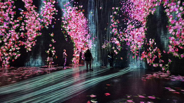 At the technical origins of immersion, two solutions allow for large scale image: LED screens, such as those in Times Square, which are also finding their way into museums, including the MoMA, and video projectors used in immersive art venues such as Artechouse in New York.